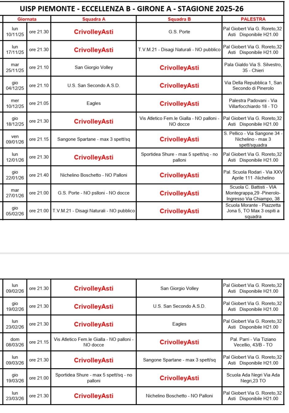 22-10-2025 10:49 Fonte: Presidenza A.S.D. Crivolleyasti - Pallavolo